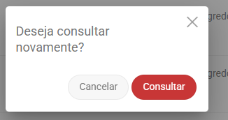 Ao clicar em tentar novamente o seguinte modal será exibido: