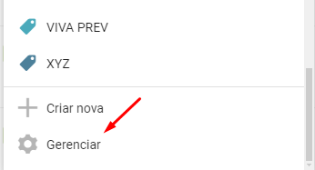Uma nova tela será exibida com todas as etiquetas, selecione a etiqueta que deseja alterar e/ou excluir.