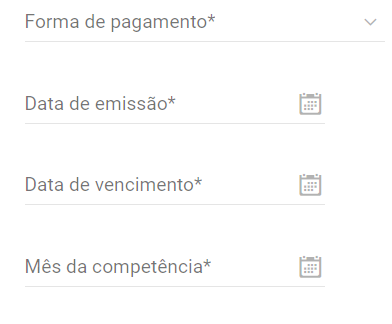 Defina a forma de pagamento, bem como as datas de emissão, vencimento e o mês da competência.