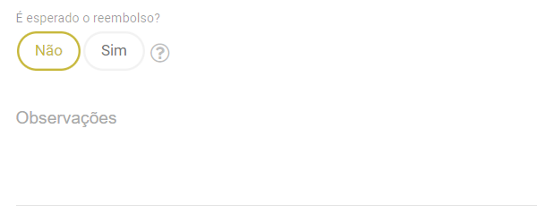 Se houver reembolso, selecione “Sim” na opção "É esperado o reembolso?". Se desejar adicionar algum comentário ou informação adicional, utilize o campo "Observações".