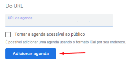 *Se houver algum problema de redirecionamento, siga este passo a passo na sua agenda do Google para cadastrar um calendário a partir de uma URL.