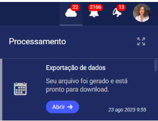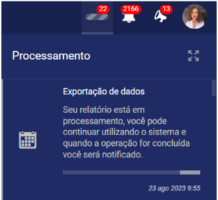 O software irá processar o pedido de exportação e exibirá no painel de processamento.
