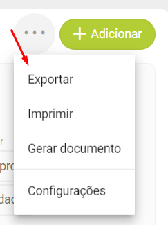 Quando sua lista de compromissos aparecer, confira se está correta e então clique no ícone , escolha a opção Exportar: