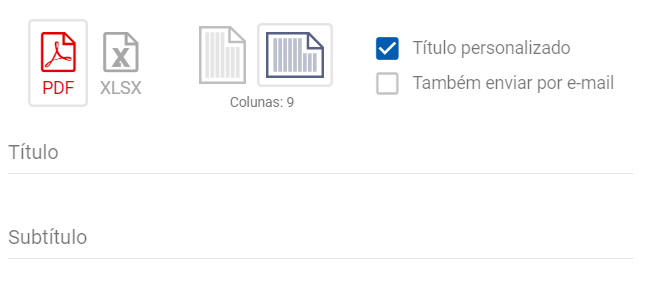 Após escolher o layout do relatório, você pode adicionar um título e subtítulo personalizado assinalando o checkbox Título personalizado:
