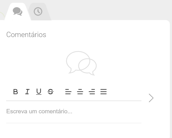 Digite o comentário e caso deseje você pode definir o alinhamento, negritar, sublinhar, tachar e/ou deixar em itálico. Para adicionar o comentário clique no ícone da seta ou aperte o Enter.