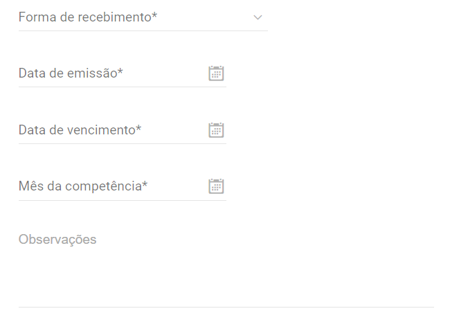 Defina a forma de recebimento, bem como as datas de emissão, vencimento e o mês da competência. Se desejar adicionar algum comentário ou informação adicional, utilize o campo "Observações".