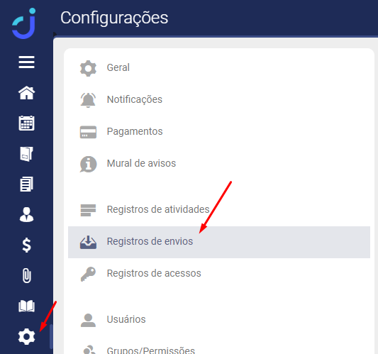 Para acessar o Registros de envios vá em Configurações > Registros de envios: