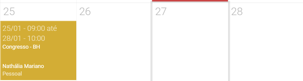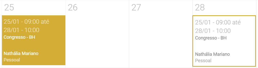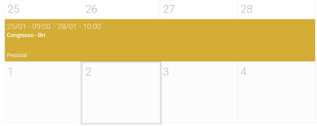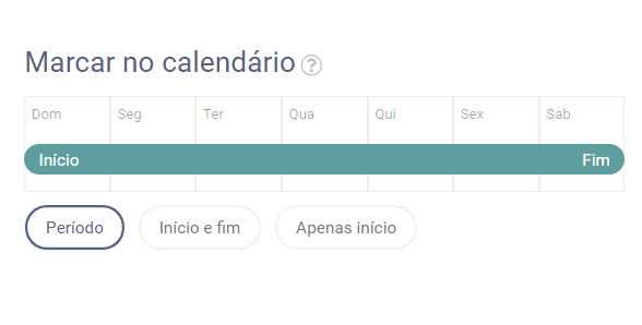 Ao escolher a opção período será exibida uma faixa que abrange e preenche todos os dias pertinentes ao compromisso.