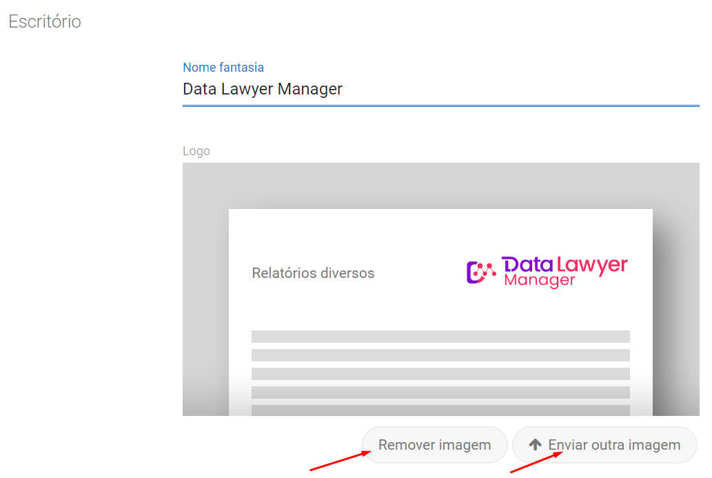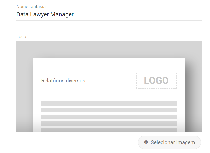 Neste campo é possível personalizar o nome fantasia e o layout dos relatórios com o logo do seu escritório.