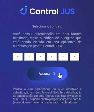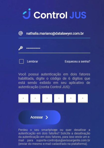 Como posso habilitar a autenticação em dois fatores no Control JUS ?