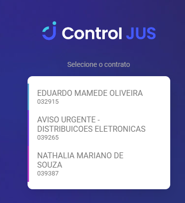 Após inserir o login e a senha, uma nova tela com os contratos em que faz parte são exibidos, selecione o contrato que a autenticação estiver habilitada.