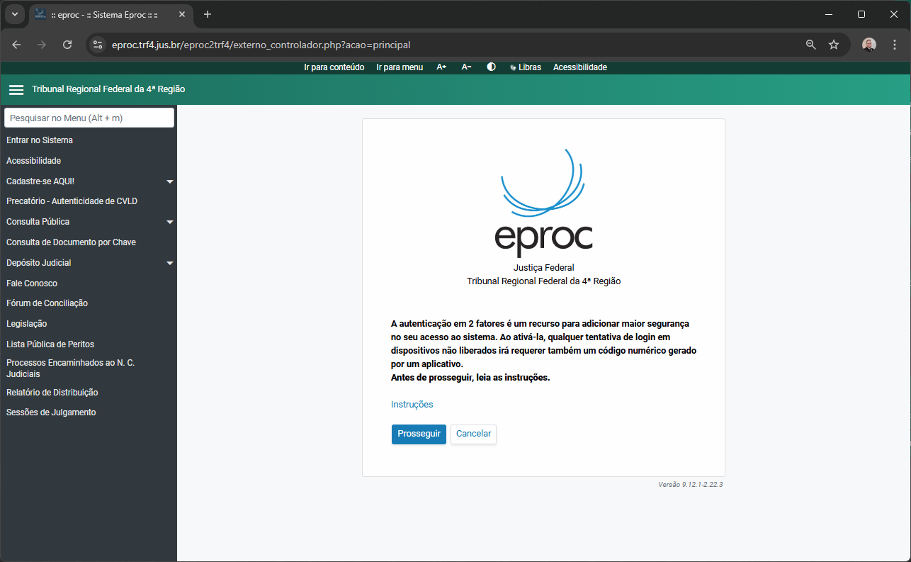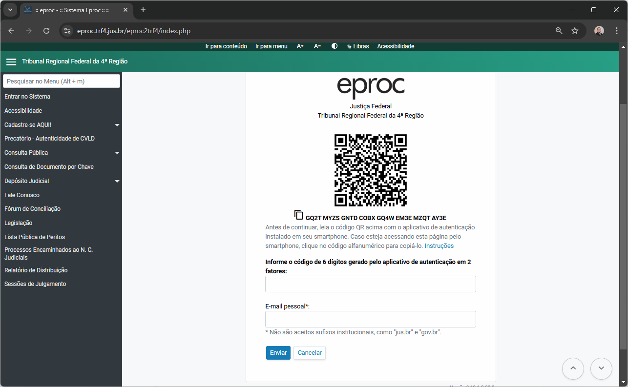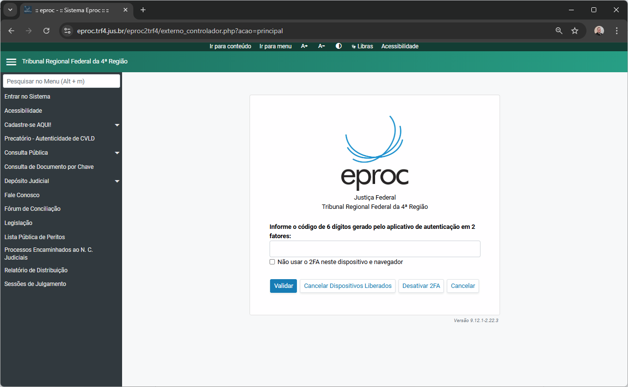 - Acesse o site do Tribunal onde o 2FA será ativado.