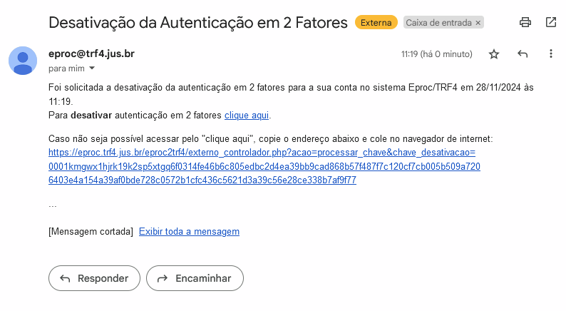 - Clique no botão “Desativar 2FA” e confirme o recebimento do e-mail de confirmação.