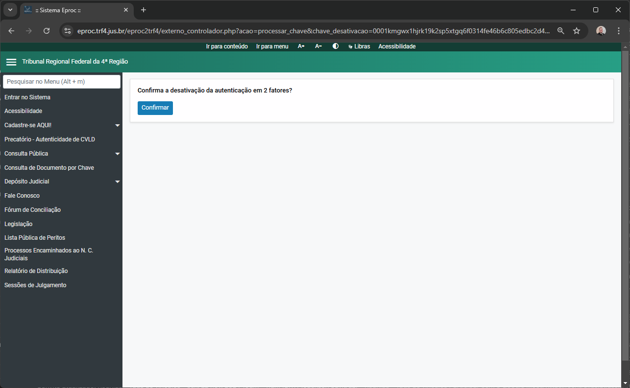 - O link irá abrir o site do Tribunal, onde deve-se clicar em “Confirmar” para desativar o token atual.