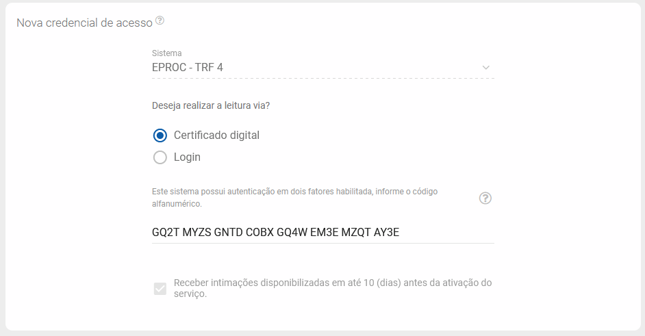 Pronto! Agora o Control JUS poderá realizar os acessos utilizando o 2FA automaticamente.
