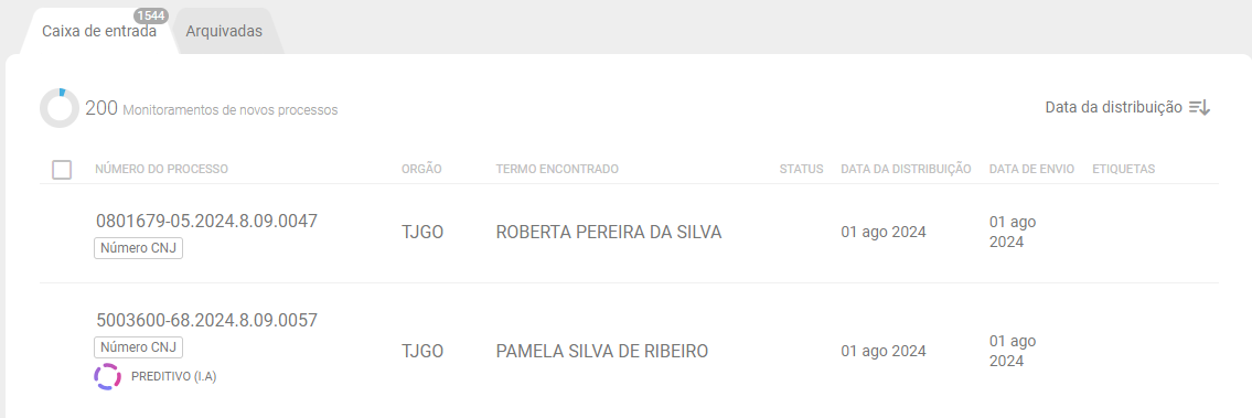 É importante ressaltar que o preditivo não se aplica em todas as ações, então se uma distribuição tiver o preditivo esse ícone será exibido logo abaixo da etiqueta do número CNJ, conforme imagem abaixo: