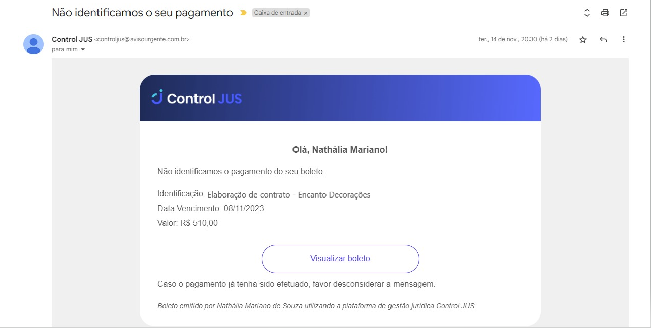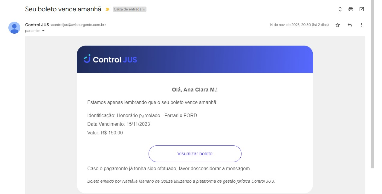 São dois os tipos de e-mails enviados da régua de cobrança: