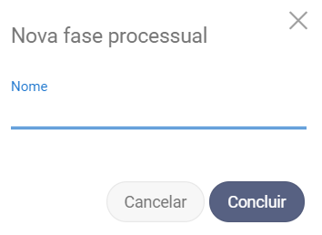 Digite o nome da fase processual e clique em Concluir.