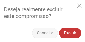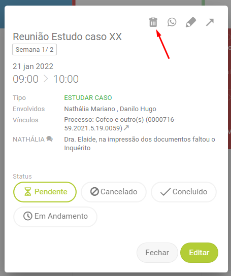 Para excluir, clique no compromisso desejado, em seguida clique no ícone da lixeira: