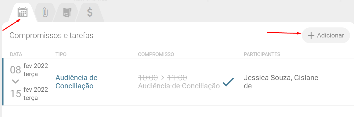 Caso deseje criar um compromisso clique em +Adicionar, preencha os campos e clique Salvar.