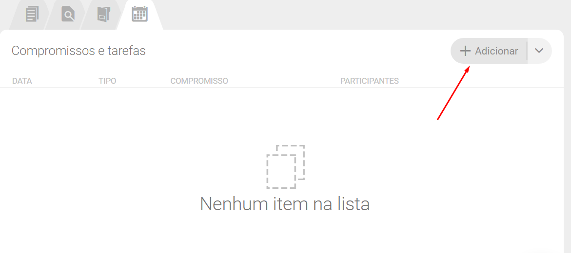 Clique em +Adicionar no canto direito, crie o compromisso e por fim clique em Salvar.