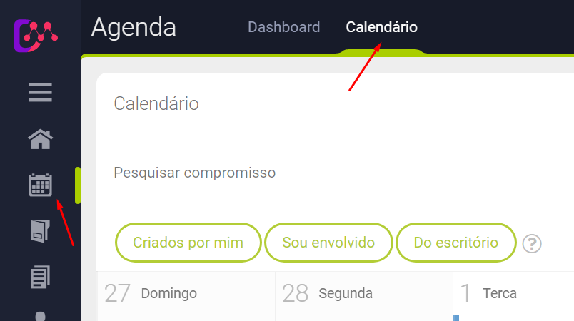 Para criar um compromisso recorrente, vá no módulo da Agenda > Calendário: