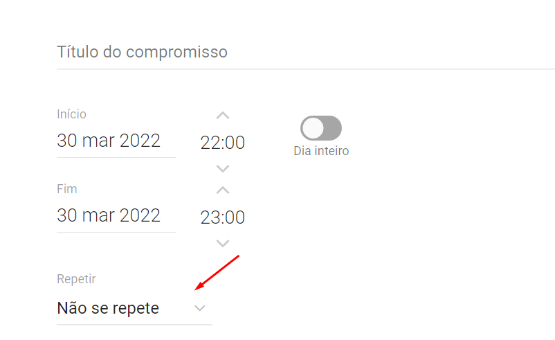 Todo dia: o compromisso criado se repetirá todos os dias até um momento determinado.