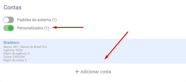 Caso deseje criar uma nova conta bancária, clique em +Adicionar Conta.