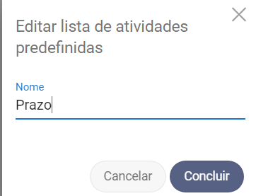 Para editar e/ou excluir uma lista de atividades predefinidas, vá no módulo Configurações > Cadastros personalizados > Agenda > Atividades predefinidas.