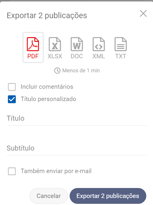 E clique em Exportar X publicações.