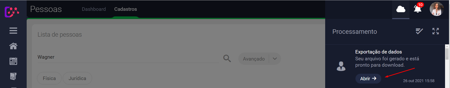 O documento entrará para a fila de processamento e quando finalizar, você será avisado com uma notificação que será exibida no ícone da central de processamento: