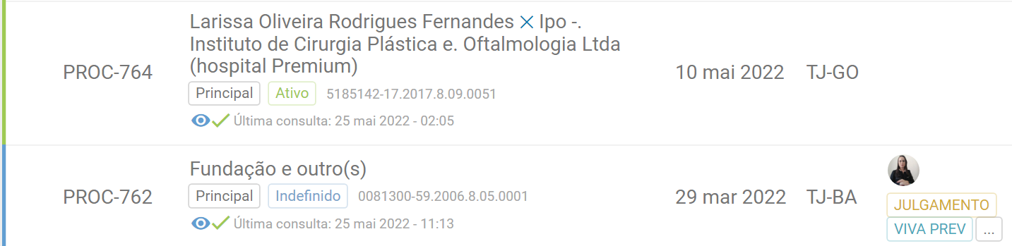 Aguarde alguns segundos e de forma automática o título dos processos, que antes eram números, passará para o nome dos envolvidos ficando assim:
