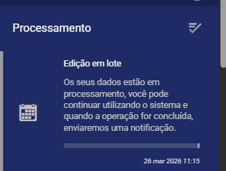 Destacamos que, para até 100 compromissos — limite máximo de itens exibidos por página — a ação de substituição ou adição é processada imediatamente.