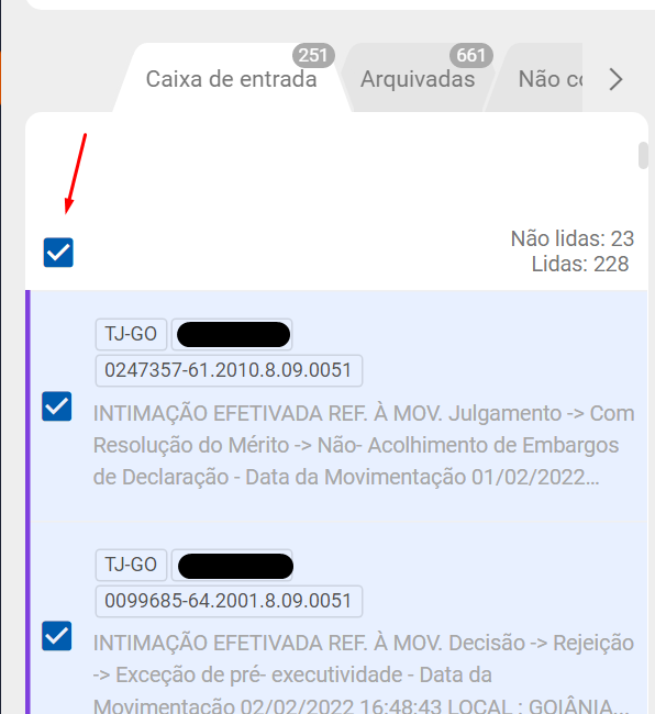 Para imprimir as publicações, vá no módulo Publicações > Publicações > Caixa de entrada e selecione as publicações que deseja imprimir: