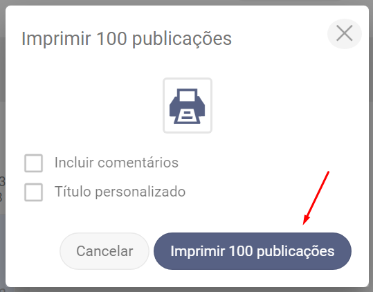 Uma nova tela será exibida, clique em Imprimir X publicações: