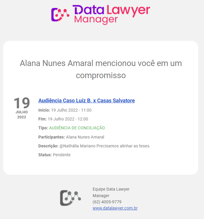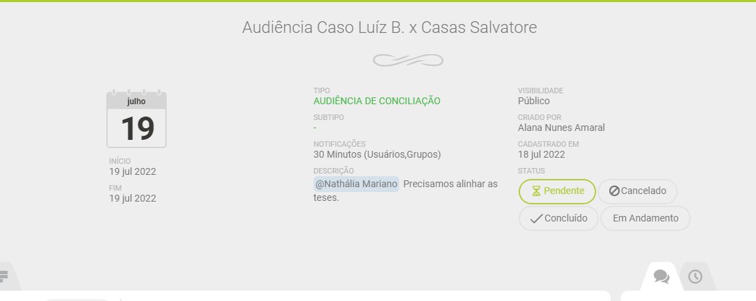 Agora você pode mencionar um usuário em um compromisso, isso vai facilitar muito a comunicação dentro do escritório. E há duas maneiras de fazer essa menção: