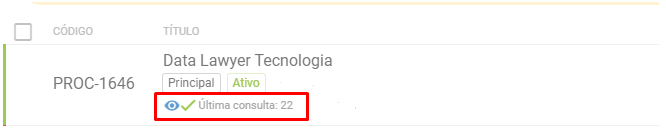 1º forma: Vá no módulo Processos, aba Pastas, localize a pasta desejada e clique no símbolo do monitoramento:
