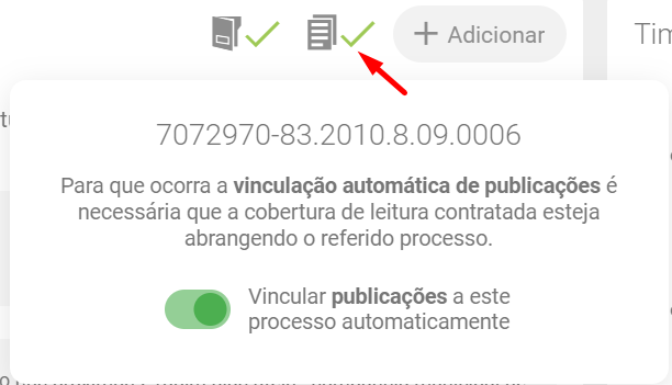 Como vincular as publicações vindas do módulo publicações na pasta do processo?
