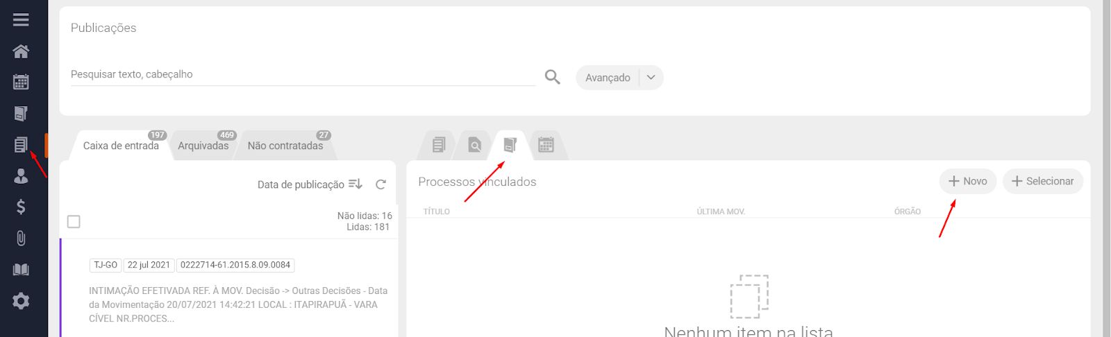 Como vincular uma publicação a uma pasta de processo?
