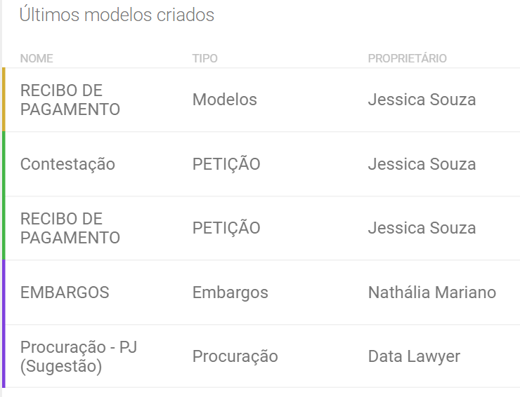 Nesse dashboard são exibidos todos os últimos modelos de documentos criados.