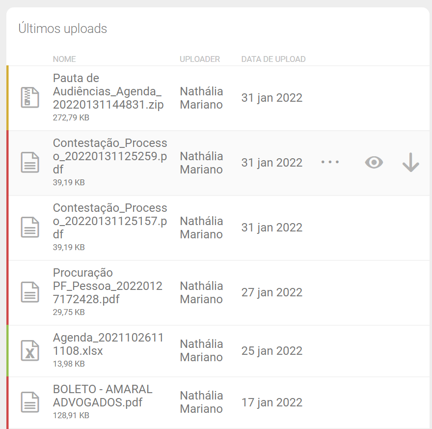 Aqui são apresentados todos os últimos documentos que foram enviados para a nuvem, ordenados do mais recente ao mais antigo.