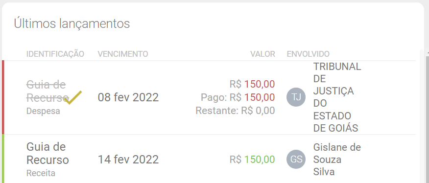 Neste dashboard é demonstrado os últimos lançamentos, do mais recente aos mais antigos.