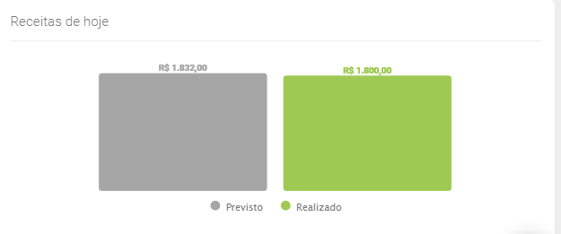 Nesse dashboard são apresentadas todas as receitas do dia. As que são previstas, ou seja, ainda não foram efetivadas e aquelas que já foram.