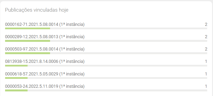 São exibidas as publicações que foram vinculadas a um processo naquele dia. Ao clicar no número do processo você será redirecionado à página do mesmo.