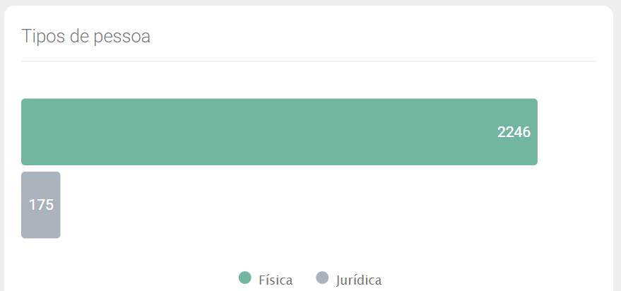 Neste dashboard mostra o total de pessoas cadastradas, classificadas de acordo com os tipos: física ou jurídica.
