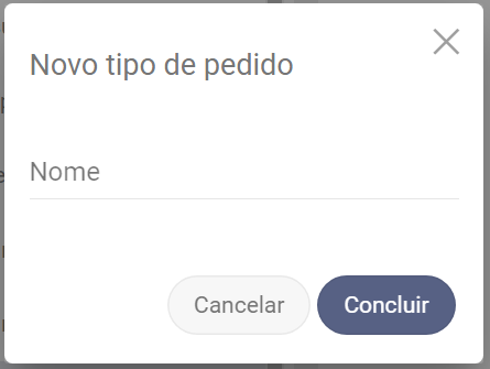 Marque a opção personalizados e para adicionar clique em +Adicionar tipo de pedido.