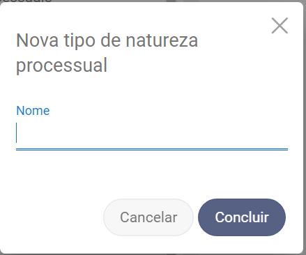 Para editar ou excluir, acesse Configurações > Cadastros personalizados > Processos > Tipos de naturezas processuais.