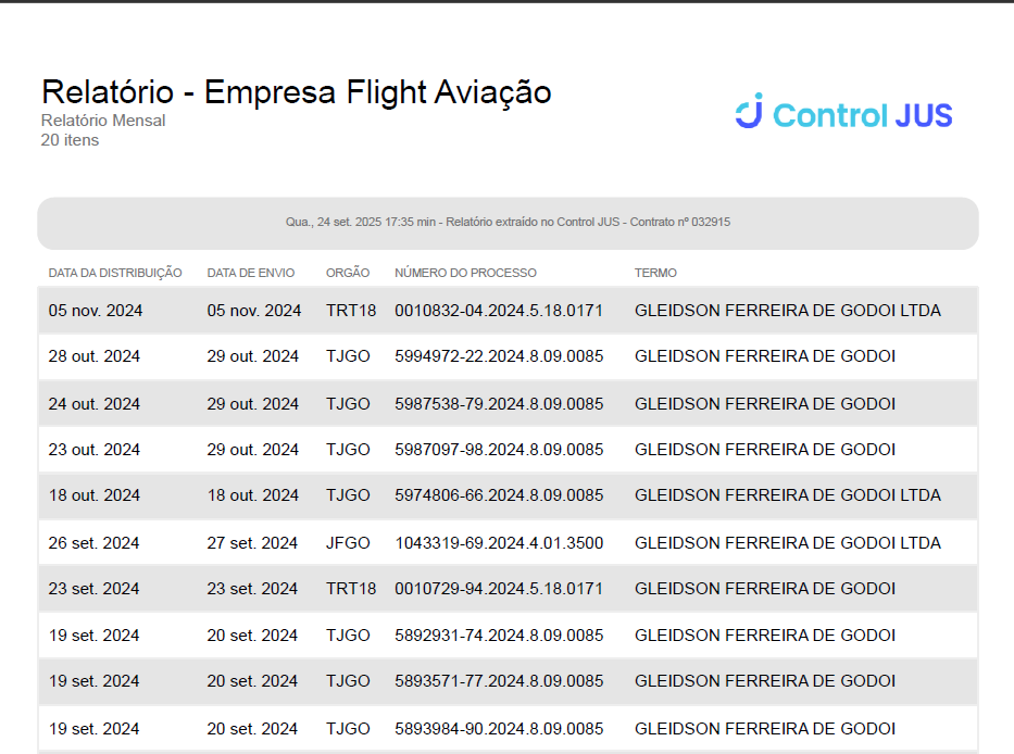 Ao clicar em “Abrir”, o download do relatório será iniciado. Confira o layout:
