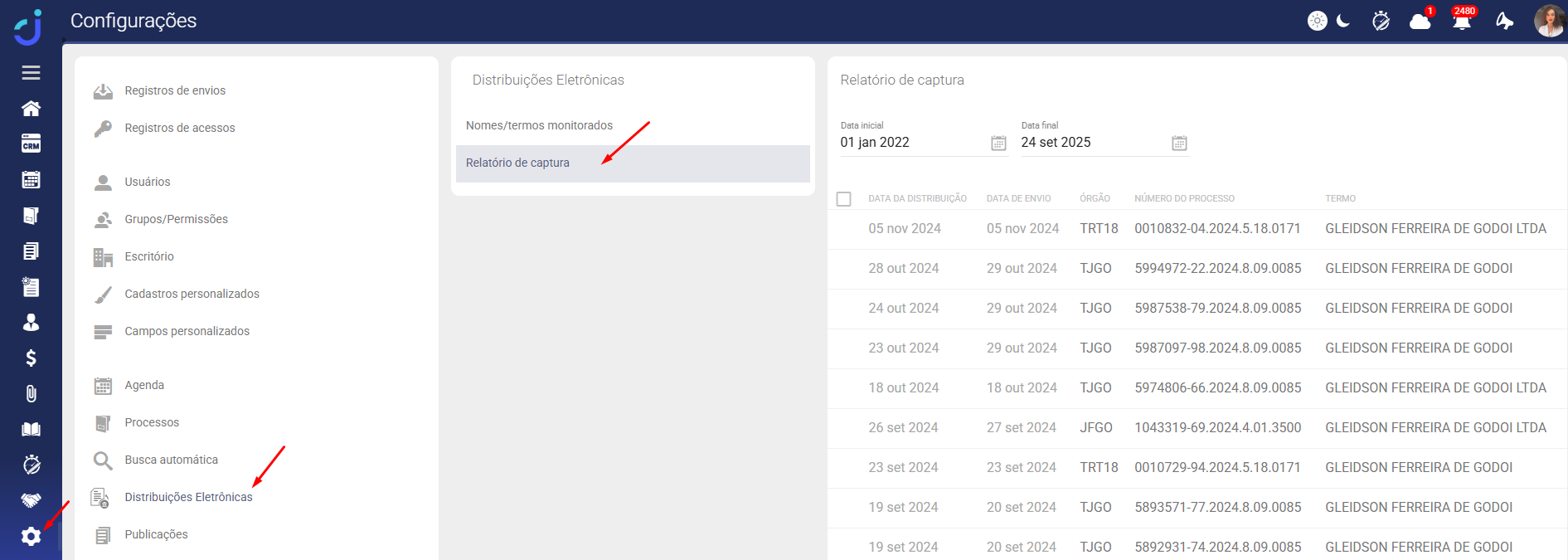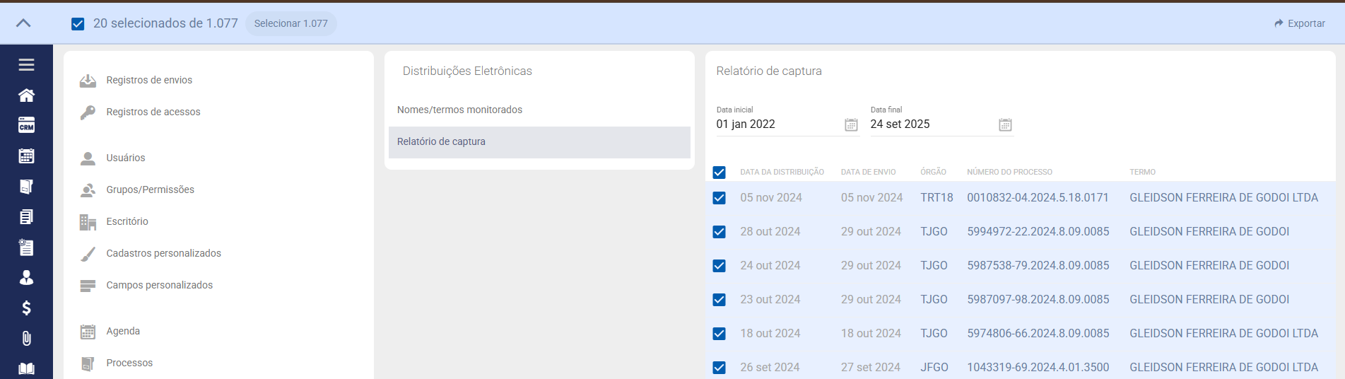 Como exportar relatório de captura das distribuições eletrônicas ?