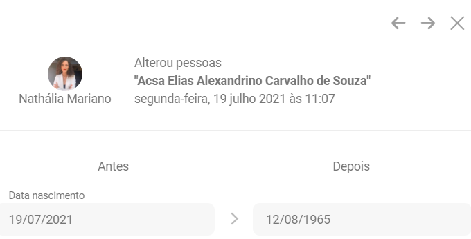 Na timeline de pessoas é exibido desde o momento da inclusão daquele contato e todas as alterações que um usuário realizou.